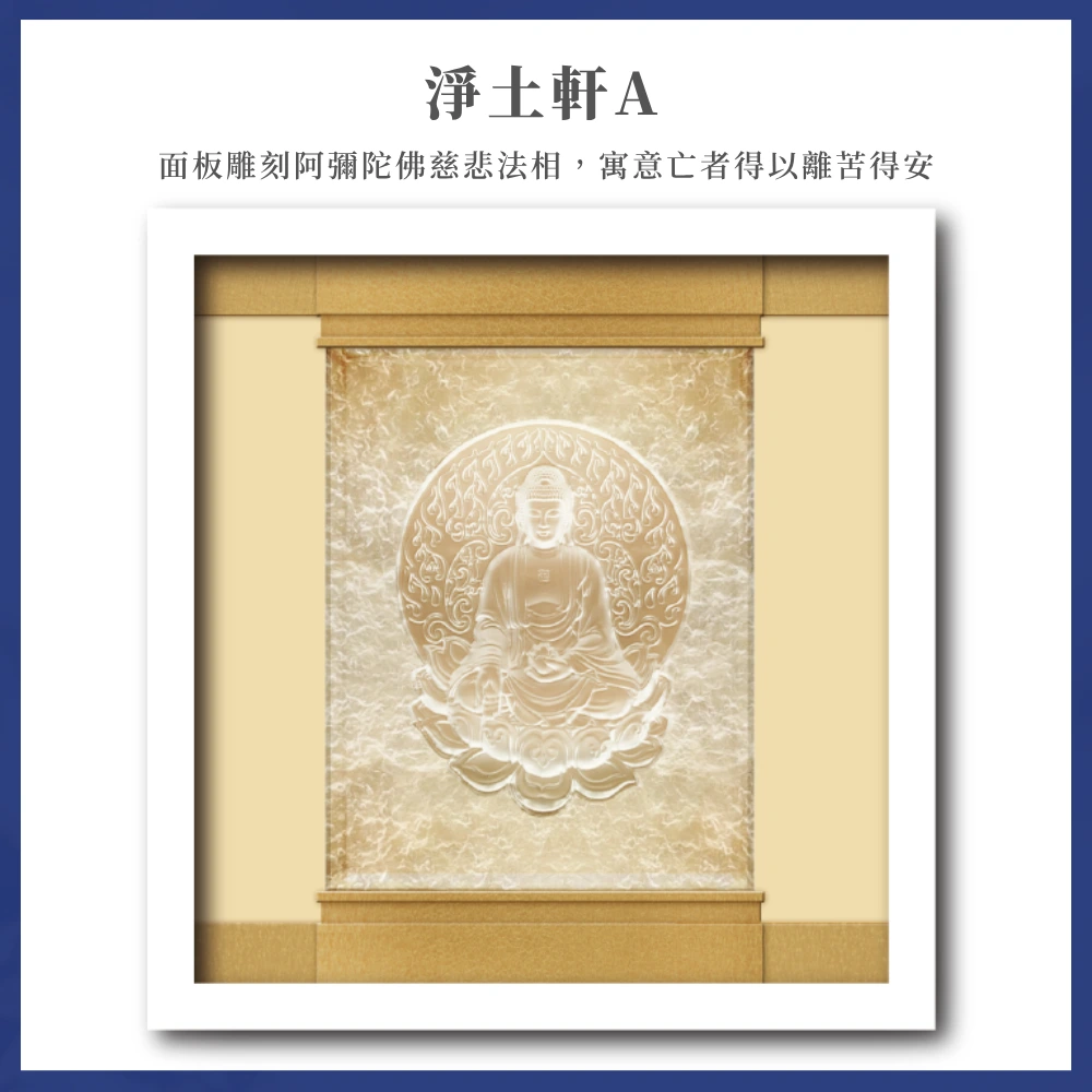 面板刻有阿彌陀佛慈悲法相,象徵慈光普照,庇佑眾生離苦得安。