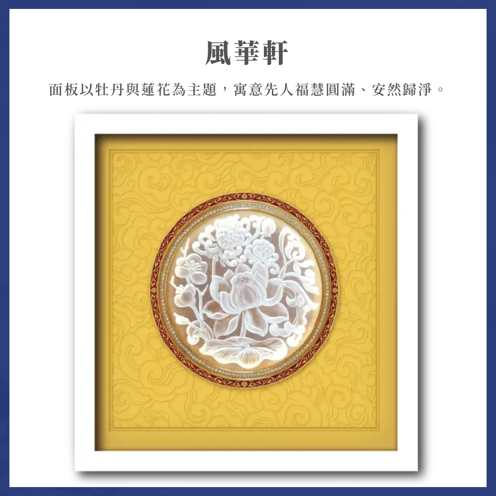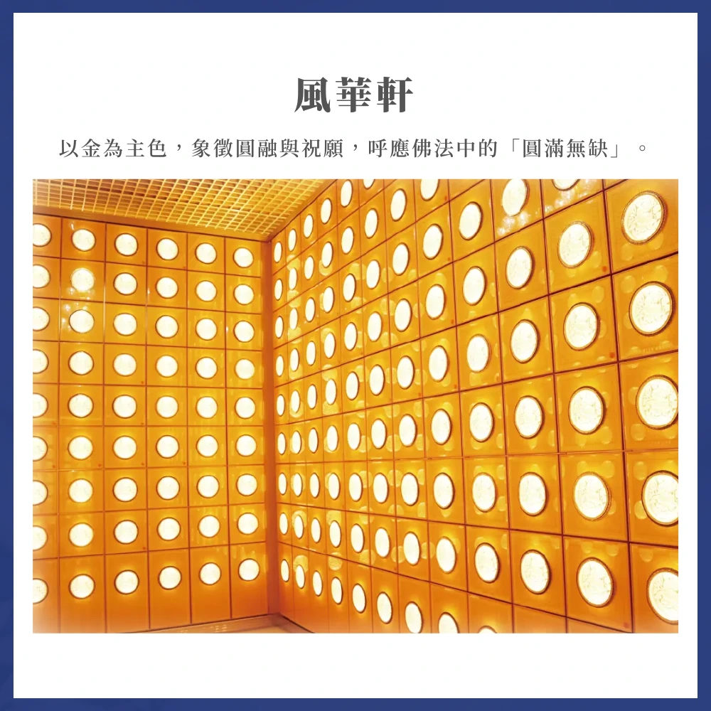 金色與琉璃光影交織,營造出清明雅靜的氛圍,讓追思更顯尊敬與安寧。