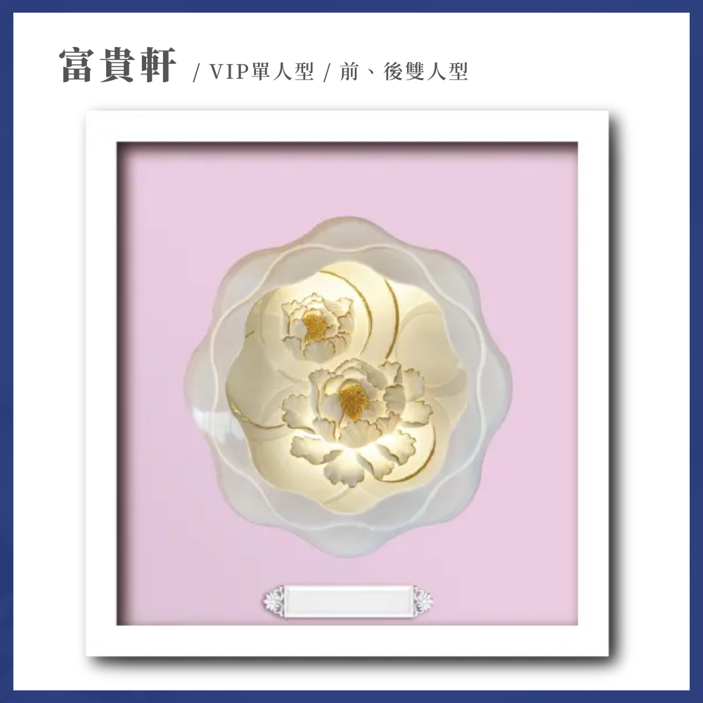 金色調與自然光影交織,展現高貴典雅之姿,呼應先人尊榮不凡的生命格局。