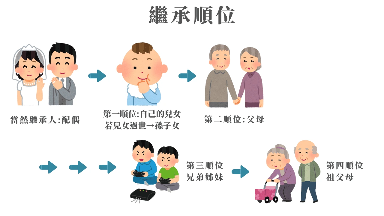 舉例來說,如果您是小孩,父母過世時您就是第一順位繼承人;若父母健在但兄長過世,父母拋棄繼承後才輪到您。