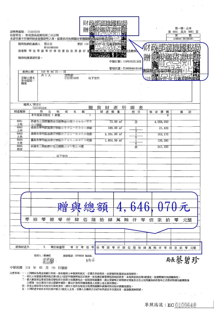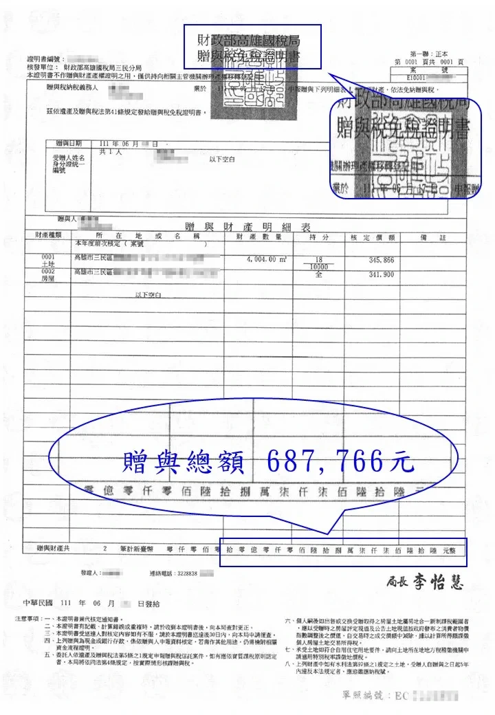 (圖 / 贈與稅免稅證明書,取自 誠家代書)