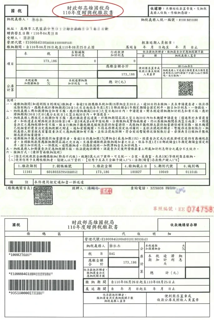 ※若需繳納贈與稅之案件,會先核發「贈與稅繳款書」